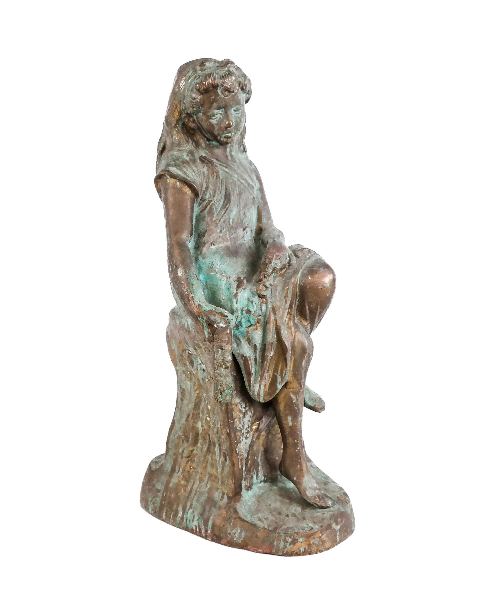 ![Bronze Statue of a Seated Girl: Bronze statue of a seated girl holding a swag of flowers, possibly Alice in Wonderland, apparently unsigned. [18.5" H x 7" W x 9.5" D]. Condition is good with heavy patina.](https://p1.liveauctioneers.com/1221/389909/216000531_1_x.jpg?height=280&quality=70&sharpen=true&version=1758662599&width=280)