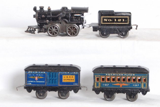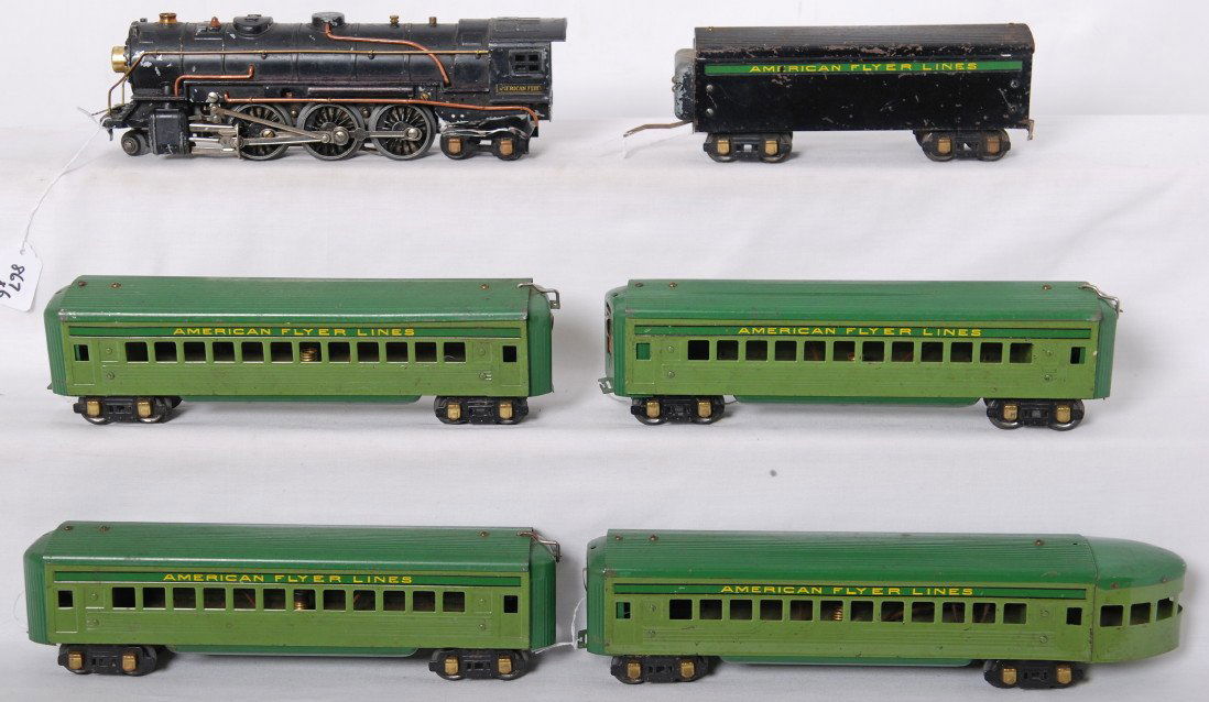 Browse a record of outcomes from past auctions, including sale prices and unsold items.American Flyer Illinois Central Black Diamond passAmerican Flyer Green Diamond steam passenger trainAmerican Flyer No. 10 loco, No. 121 tender, 1107,American Flyer W.G. 4692 loco with 4671 tenderMisc American Flyer GroupAmerican Flyer Illinois Central TrainAmerican Flyer 3117 loco, 3380, coach, 3382 obs.American Flyer two tone green O gauge passenger carsAmerican Flyer Eagle Passenger Train Set.American Flyer Lone Scout Passenger Train Set.American Flyer and Marx O gauge accessoriesAmerican Flyer O gauge steam freight setAmerican Flyer wide gauge lamps, semaphores, water...AMERICAN FLYER NO. 4654 AND STATESMAN CARSAmerican Flyer Burlington Zephyr 9900 articulatedAmerican Flyer 9900 Burlington Zephyr passengerAmerican Flyer 1090 Empire Express, 3211w/handrailTinplate American Flyer Passenger Train Set.American Flyer 3015, 3000, 3001, 3001American Flyer The Comet streamline passengerSelection of Lionel & American Flyer AccessoriesFive American Flyer locos and eight tendersAmerican Flyer 3011, RPO, Broadway Limited carsAmerican Flyer 561 steam loco and Pennsylvania O gauge