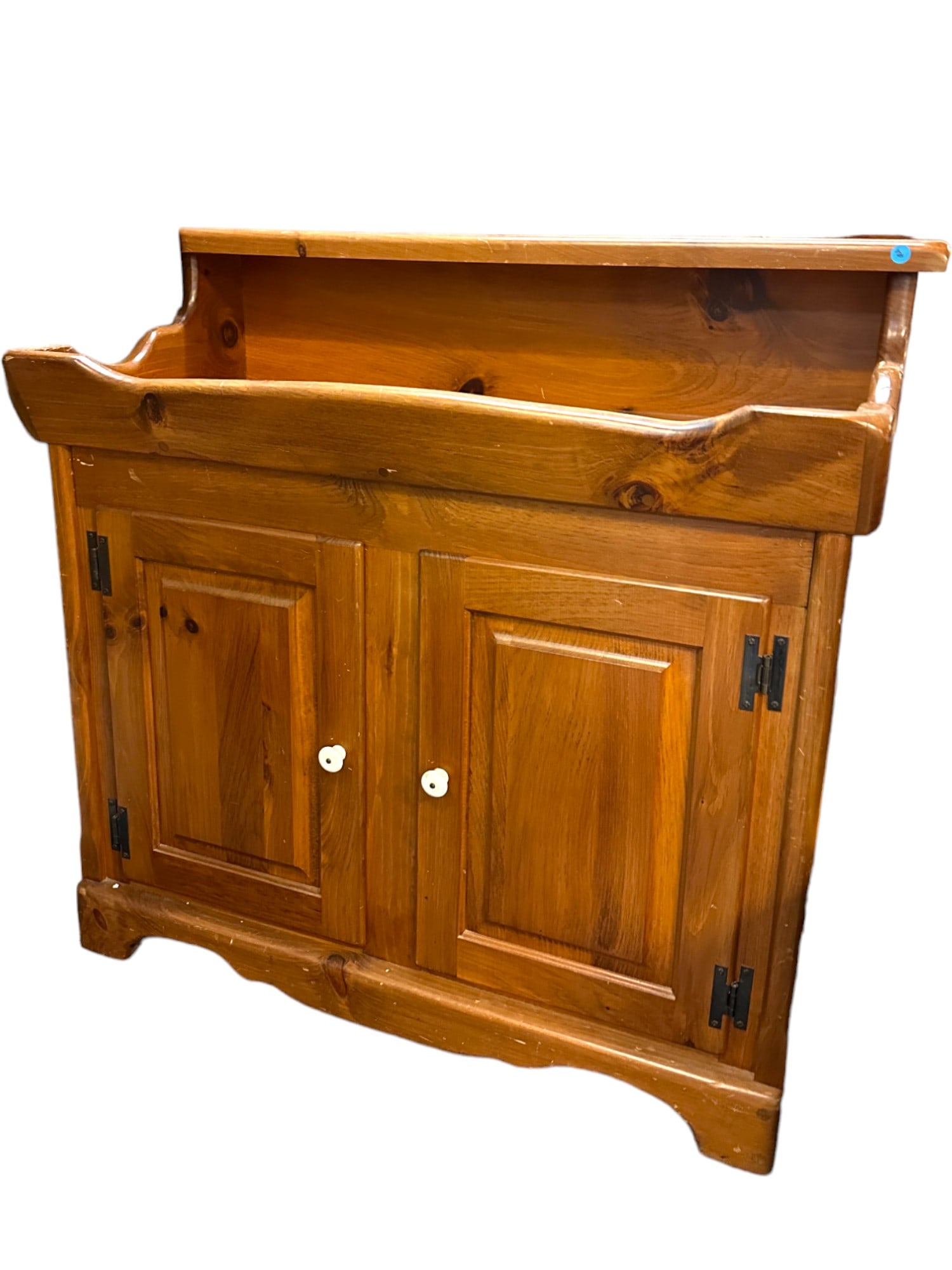 ![Antique American Dry Sink and Table: Two antique American items, including: a pine dry sink with two doors and a single drawer [33 1/2 x 42 1/2 x 19 inches] and a trestle table [24 x 41 x 17 inches]. Both are worn.](https://p1.liveauctioneers.com/1221/146268/74305244_1_x.jpg?height=280&quality=70&sharpen=true&version=1564761472&width=280)