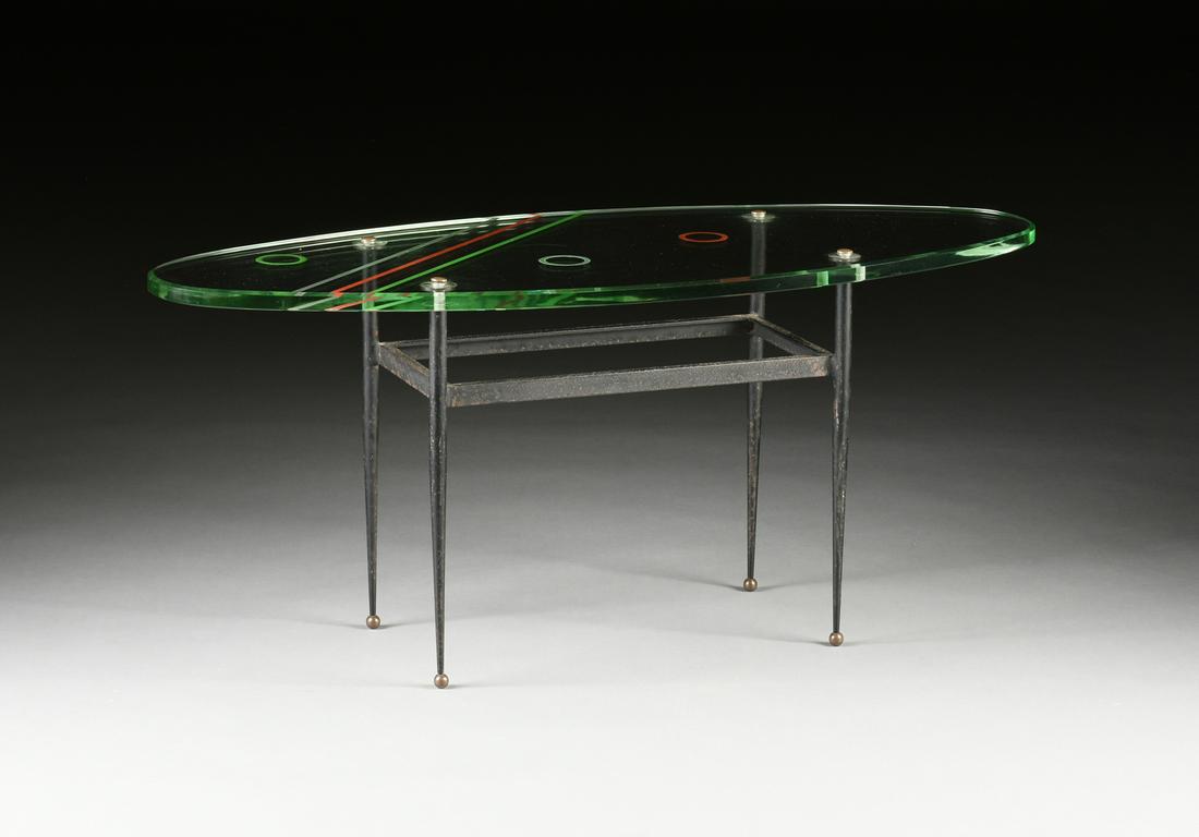 ![Hastings Art Deco Coffee Table: Black Bakelite, burled walnut, and cinnabar lacquer coffee table. American, ca. 1933. Manufactured by Hastings Co., Grand Rapids, Michigan. [12" x 18" D x 38" W]. Wear commensurate with age and use, i](https://p1.liveauctioneers.com/1221/69997/36390433_1_x.jpg?height=280&quality=70&sharpen=true&version=1429422885&width=280)