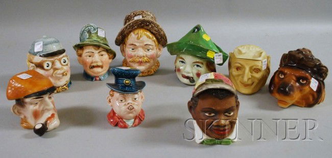 ![Johann Maresch: (Austrian, 1841-1921) four painted pottery figures: seated black boy whistling and reading a book, impressed "JM II 6483", 10-1/14 in., [surface wear;] bust-form figural tobacco jar depicting a man in](https://p1.liveauctioneers.com/33/87964/45070537_1_x.jpg?height=280&quality=70&sharpen=true&version=1461544719&width=280)
