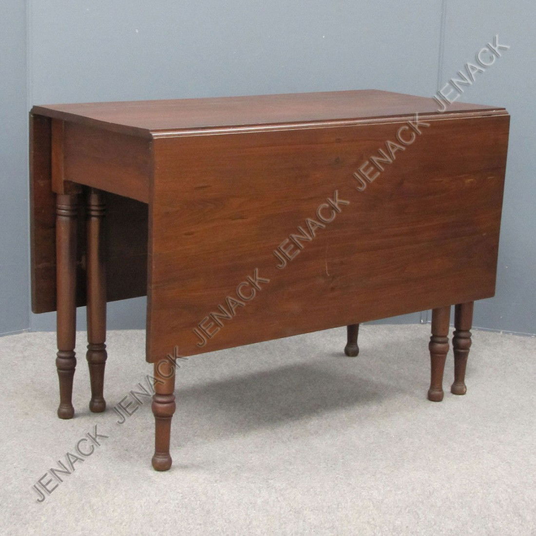 ![Vintage Danish-Style Drop-Leaf Table: Mahogany veneer drop-leaf gateleg fold-down table. [Closed: 10" W x 52" D x 28 1/2" H; Open: 39" Sq x 28 1/2" H]. Some chips at edges with veneer loss.](https://p1.liveauctioneers.com/1221/71085/36850996_1_x.jpg?height=280&quality=70&sharpen=true&version=1429715598&width=280)