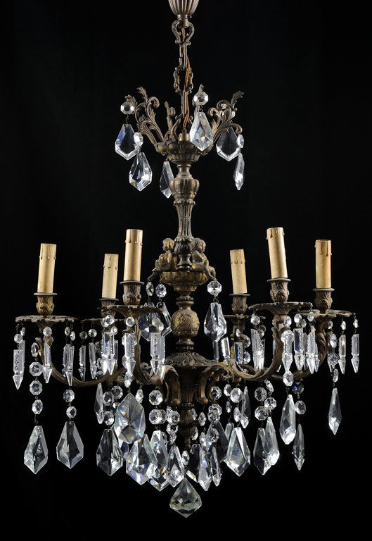![Neoclassical-Style gilt Bronze 30-Light Chandelier: In the Baltic taste with elegant swept arms and pendant faceted prisms. Second half 20th century. [34 x 38 diam inches]. Some swags and prisms loose or missing, small chips.](https://p1.liveauctioneers.com/1221/313716/168506105_1_x.jpg?height=280&quality=70&sharpen=true&version=1704316731&width=280)