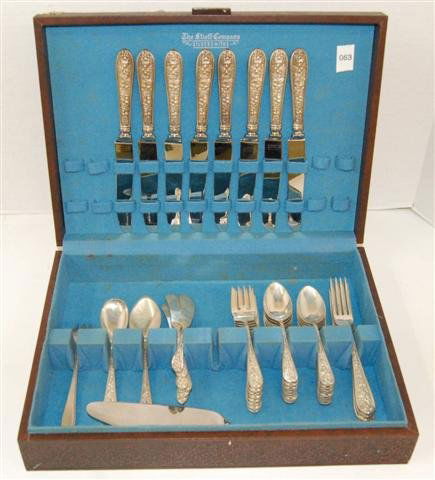 Browse a record of outcomes from past auctions, including sale prices and unsold items.Set of Sterling Flatware, International "Pansy",Cased Set of Steiff Sterling - " Corsage " pattern20th century cased silver dessert knives and forksA collection of silver flatware, to includeINTERNATIONAL STERLING FLATWARE SETRemington & WinchesterGORHAM "ENGLISH GADROON" STERLING SILVER FLATWARE SET Providence, Rhode Island, 20th Century Approx.Mother of Pearl Flatware: Set of Eight Meridian Mother -of-Pearl Handled Knives withƒ Gundorph Albertus (1887- 1969) & Georg Jensen (Edited by, 20th c.) Cutlery set, 127 pieces,A cased set of six silver gilt and guilloché backedA collection of cased silver flatware,English Silver Plated Flatware Cutlery Set, 61pcs,Set of Cork and Son Sheffield Steak KnivesCASED REED & BARTON "SILVER WHEAT" SILVER FLATWARE SET FOR TWELVE 20th CenturyH18-2 WESTMORLAND MILBURN 100PC STERLING SET96 Pcs. International Silver Plate FlatwareLmtd Bonnie Parker & Clyde Barrow Knife Set w CaseBertel Gardberg (1916-2007) Case with a cutlery set, 121 pieces, model 'Lion de Luxe', with:Sheffield 1879 by Henry Wilkinson and Co A cased set of Victorian sterling silver and banded blueA cased set of six shell and thread pattern butterA cased set of six Victorian silver Apostle tea spoonsA collection of miscellaneous silver2000 Case XX Limited Millennium 50 Piece SetA set of nine silver gilt dessert knives and forks with
