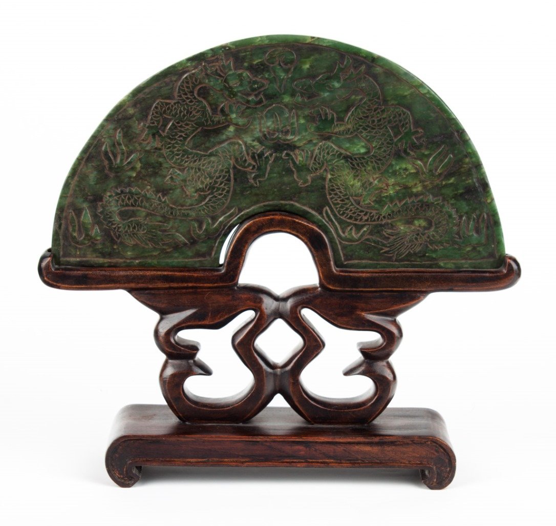 ![Large Chinese grey celadon jade hu tablet: [damaged]. H. 195mm Provenance: From the Leo Walker Tattersfield Collection](https://p1.liveauctioneers.com/1286/33990/13847778_1_x.jpg?height=280&quality=70&sharpen=true&version=1351468650&width=280)