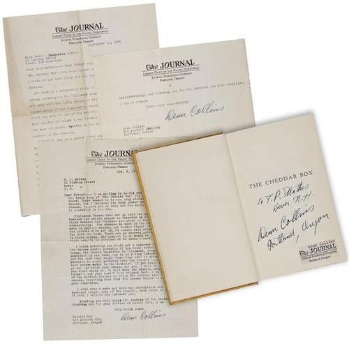 ![Collins (D.) The Cheddar Box: Collins (D.) The Cheddar Box,vol. 1 [all published as a book; volume 2 is a piece of cheese], inscribed by the author and some interesting letters from him inserted, Portland, 1933 § Driver (E](https://p1.liveauctioneers.com/410/24288/8749620_1_x.jpg?height=280&quality=70&sharpen=true&width=280)