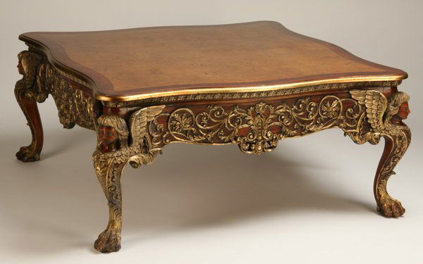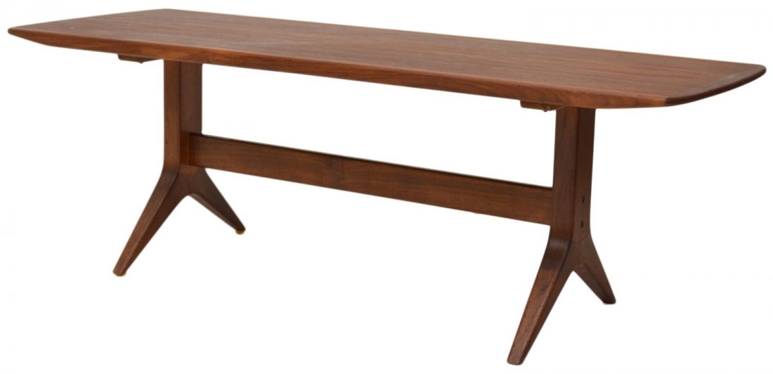 ![Mid-Century Walnut Cocktail Table: Mid-century rectangular shaped walnut coffee table with rounded corners and lower shelf, on tapered legs. [18" H x 52 1/2" W x 22 1/2" D]. Scratches and dents.](https://p1.liveauctioneers.com/1221/238296/124422404_1_x.jpg?height=280&quality=70&sharpen=true&version=1646933050&width=280)