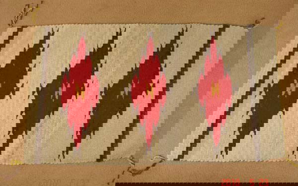 ![Navajo Transitional Wearing Blanket [Rug]: Navajo Transitional Wearing Blanket [Rug] ca 1900 soft, handspun wool woven with colors of red, indigo, dark brown, and cream; banded design with corner block anchor points and central cross 47 x 70 i](https://p1.liveauctioneers.com/197/411077/228531700_1_x.jpg?height=310&quality=70&version=1774275659)
