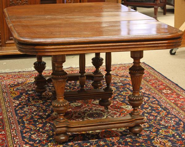 ![Baker Table and Six Chairs: Fruitwood oval dining room table and six chairs. Baker manufacturer. [55" L x 45" W x 29 1/2" H, 3 leaves each 14"]. One arm of one chair broken.](https://p1.liveauctioneers.com/1221/91347/46716434_1_x.jpg?height=280&quality=70&sharpen=true&version=1468855222&width=280)