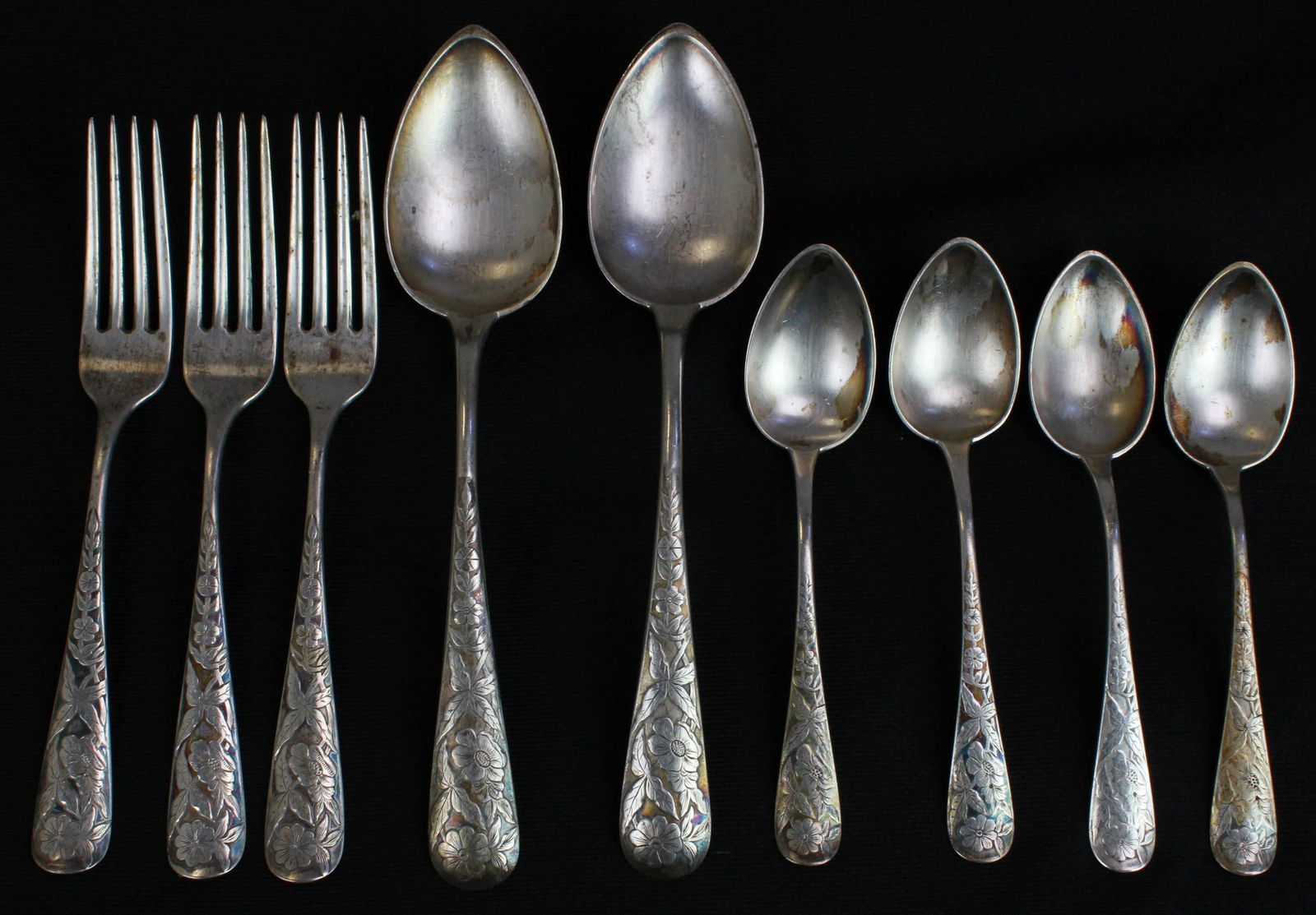![Two pieces Duhme & Co. silver: sterling Lily fish server, inscribed on back "1861/h/1886", 11-3/8 in., [tip bent;] coin silver Tipped ladle, inscribed "Buckingham" and "Dec. 25, 1872", back inscribed "E. M. and C. B./From/Mother.",](https://p1.liveauctioneers.com/33/21918/7578346_1_x.jpg?height=280&quality=70&sharpen=true&version=1276885475&width=280)