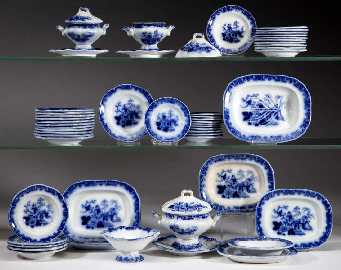 ![Assembled Group of Flow Blue Tableware (14 Pcs): Assembled group of 14 flow blue table articles, late 19th century, including Davenport Amoy and Scinde, comprising cups, bowls, platters and a tureen. [Platter: 18" x 14 1/2"]. Loss to handle; most wi](https://p1.liveauctioneers.com/1221/292690/155225885_1_x.jpg?height=280&quality=70&sharpen=true&version=1686926474&width=280)
