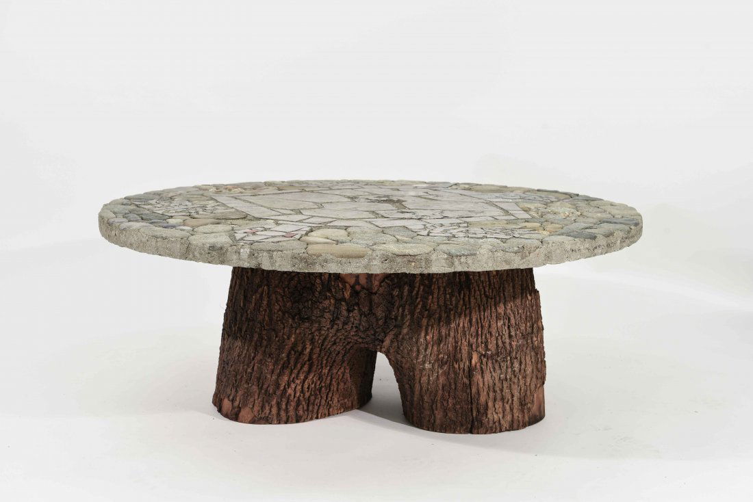 ![Bronzed Metal & Stone Tile Coffee Table: Modern coffee table, having a bronzed metal base and stone tiles inset top. [20" H x 48" W x 29" D]. Normal wear as with age.](https://p1.liveauctioneers.com/1221/202416/103694720_1_x.jpg?height=280&quality=70&sharpen=true&version=1621264489&width=280)