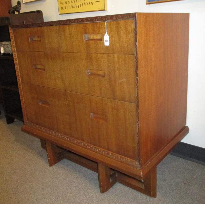 ![Frank Lloyd Wright for Henredon Desk: "Heritage Henredon by Frank Lloyd Wright" 1954-1955, 20th century modern desk. Stamped to underside of desk insert. [29 x 51 x 20 inches; 24 1/2 inches to apron]. Scratches; moisture/water damage at b](https://p1.liveauctioneers.com/1221/138560/70426366_1_x.jpg?height=280&quality=70&sharpen=true&version=1554825561&width=280)