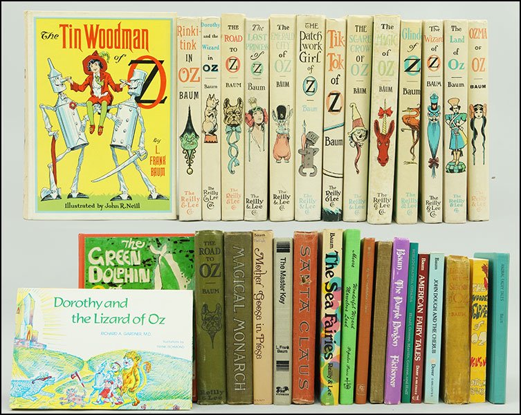 ![Baum (L. Frank) Tik-Tok of Oz, [c.1920].: NO RESERVE Baum (L. Frank) Tik-Tok of Oz, 12 colour plates and numerous other illustrations, original blue cloth, spine lettered in black, colour illustration pasted to front cover, tiny loss to 'u' o](https://p1.liveauctioneers.com/5458/250450/130079550_1_x.jpg?height=280&quality=70&sharpen=true&version=1654080007&width=280)
