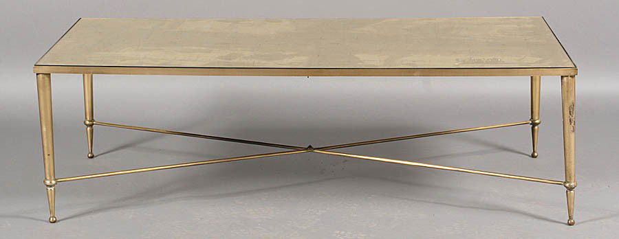 ![Regency-Style Glass Inset Coffee Table: Regency-style glass inset coffee table with black and gold decoration, having an x-form stretcher. [18 1/2 x 42 x 26 1/2 inches].](https://p1.liveauctioneers.com/1221/144215/72931513_1_x.jpg?height=280&quality=70&sharpen=true&version=1560538256&width=280)