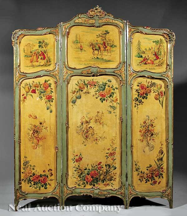![Three-Panel Floor Screen: Three-panel floor screen, the painted wood frame with multicolor panes of floral decoration. [70 1/2" H x 73" W]. Some separation to frame; a few cracks to panes.](https://p1.liveauctioneers.com/1221/255355/132842246_1_x.jpg?height=280&quality=70&sharpen=true&version=1659713636&width=280)