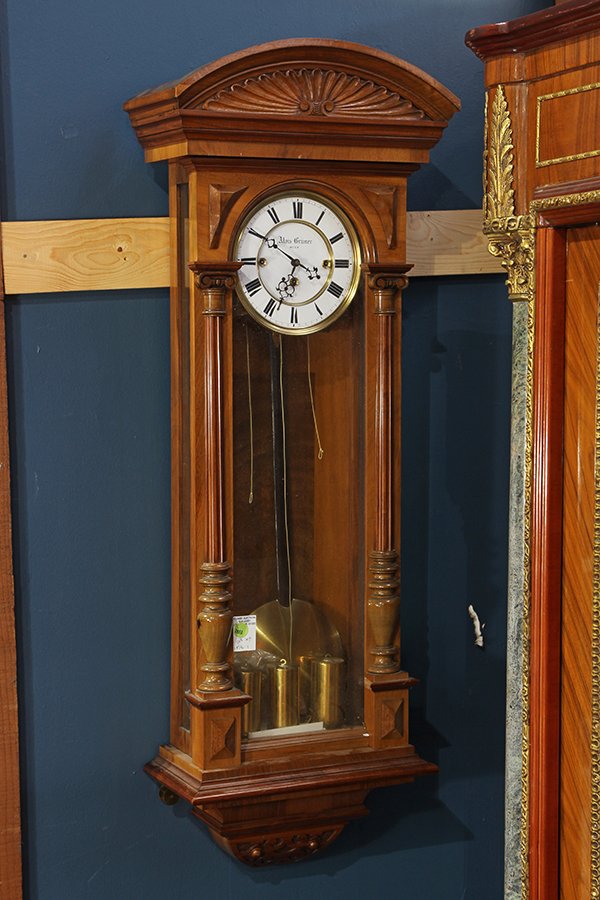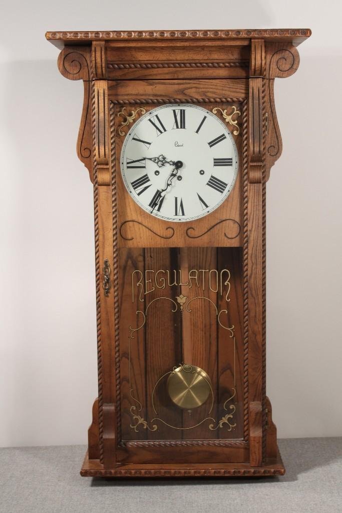 ![Fruitwood Wall Regulator Clock: Fruitwood wall regulator clock, possibly with assembled clock parts. [53 x 19 1/2 x 11 inches].](https://p1.liveauctioneers.com/1221/126279/64851925_1_x.jpg?height=280&quality=70&sharpen=true&version=1536336746&width=280)
