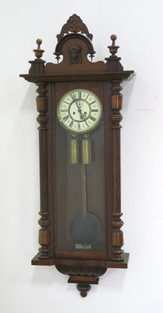 ![Victorian Wall Regulator Clock: Victorian wall regulator clock with a reverse painted lower door and metal face. [24 x 17 1/2 x 3 inches]. Metal face with wear.](https://p1.liveauctioneers.com/1221/144060/73443101_1_x.jpg?height=280&quality=70&sharpen=true&version=1562506415&width=280)