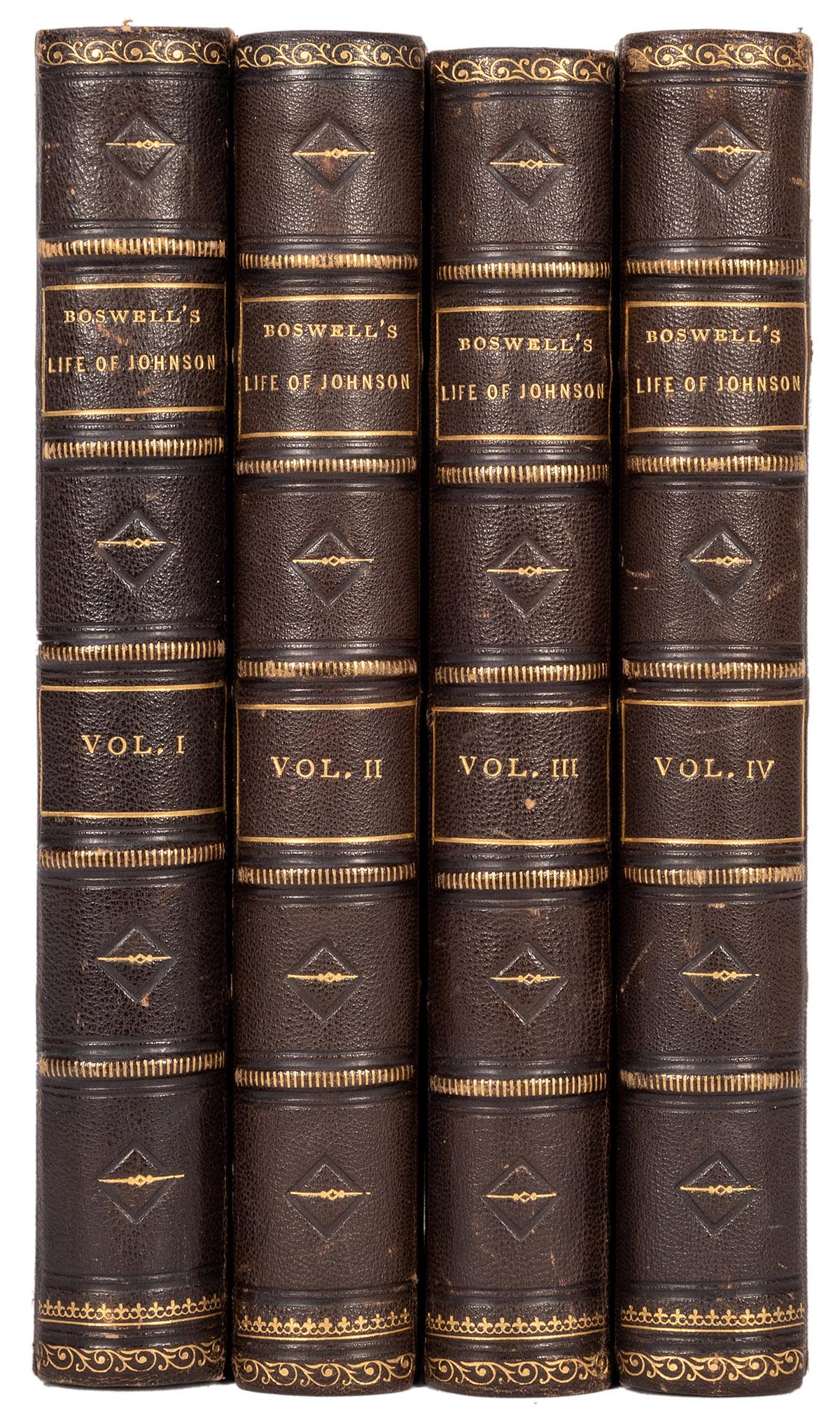 ![The Life of Samuel Johnson, LL.D.: [Fine Binding] Boswell, James. The Life of Samuel Johnson, LL.D. Oxford: William Pickering, 1826. First Pickering edition. 4-vol. set. Later half calf, raised bands with gilt rolls, blind stamped loze](https://p1.liveauctioneers.com/928/163605/82634333_1_x.jpg?height=280&quality=70&sharpen=true&version=1583853127&width=280)