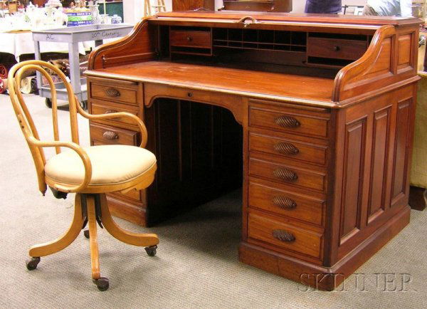 ![Contemporary Cylinder Roll Desk: Contemporary cylinder roll desk, having a fitted interior stained top right. Overall good condition. [35 1/4" w x 19" d x 38" h].](https://p1.liveauctioneers.com/1221/45281/20770800_1_x.jpg?height=280&quality=70&sharpen=true&version=1379343362&width=280)