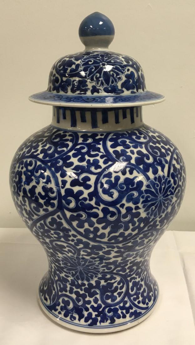 ![Two Asian Blue and White Porcelain Items: Comprising a twin handled jar and cover with traditional scenes [4 1/2 x 5 3/4 x 4 inches]. 20th-21st century. Accompanied by a small shouldered vase with floral decoration. No marks. 19th-20th centur](https://p1.liveauctioneers.com/1221/295608/157444968_1_x.jpg?height=280&quality=70&sharpen=true&version=1689821635&width=280)