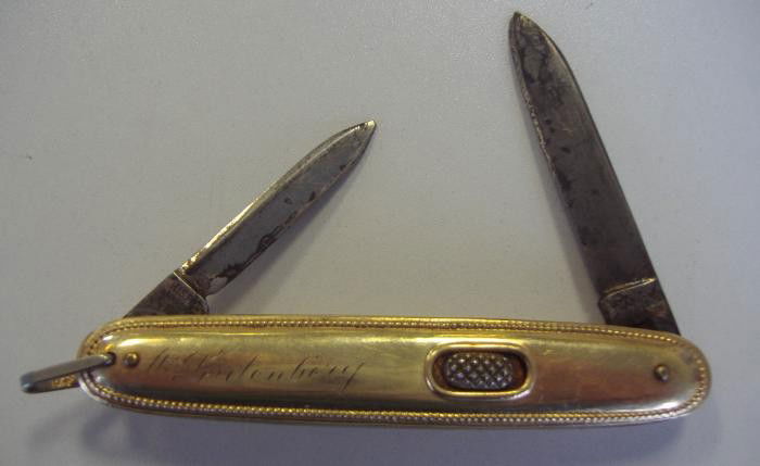 ![Joseph Gill, Sheffield knife and sheath.: A Joseph Gill, Sheffield knife and sheath. 9 3/8" spear point blade. Marked on ricasso "V [crown] R / JOSEPH GILL / PARLIAMENT ST. / SHEFFIELD" and on reverse "PER USO." Nickel silver crossguard. Yell](https://p1.liveauctioneers.com/179/279956/147472187_1_x.jpg?height=280&quality=70&sharpen=true&version=1677373515&width=280)