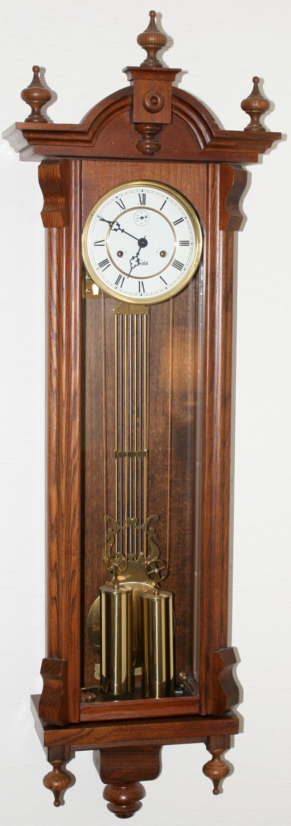 ![Waltham Wall Clock [154847]: Waltham wall clock. It measures 12" and has a set mechanism, but doesn't seem to wind. Large Arabic numerals and a wood fancy frame. Please see photos for more details. Needs glass replaced. [Waltham]](https://p1.liveauctioneers.com/2699/335311/181191382_1_x.jpg?height=280&quality=70&sharpen=true&version=1719964151&width=280)