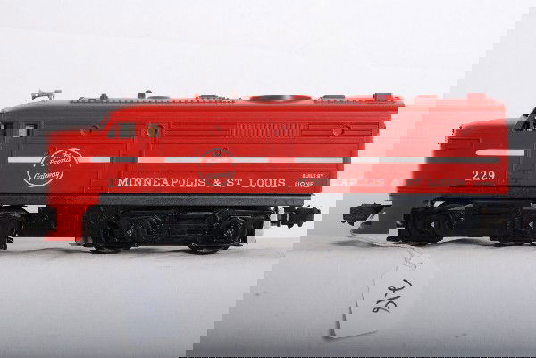 Browse a record of outcomes from past auctions, including sale prices and unsold items.Lionel No. 229 Minneapolis and St. Louis Alco, unrLionel Pass Set 229 0-2689W 2630 2630 2631Lionel 229 steam locomotive with 02666W whistle tenderLionel Prewar O Gauge No. 229 Set BoxLionel prewar 254 boxed set, 229 passenger setLionel No. 229 Boxed In Box Freight Set.Lionel Prewar No 229 Locomotive w Whistle TenderLionel group of parts locos 634, 44, 229, 610, etcFactory sealed Lionel No. 229 M.St.L. Alco in OBLionel "O" gauge No. 229 steam locomotive with tenLionel 229 steam loco, 2689W, two 2630 Pullman, 26Lionel Pre and Postwar 229 O Gauge Steam Freight SetLionel Set 139W 229 2689W 2651 2654 2657 MIBLionel No. 229 steam locomotive and No. 2689T whiLionel 229 243W 1130T 6066T 6014 6465 6004 6014Lionel 229 Loco 1689T Tender 610 612 Pass CarsLionel O Gauge Steam Engine Model 229 (type I)Unrun Lionel No. 229 M&St.L F3 diesel B unitLionel Prewar Gunmetal 229 Steam Loco w/ 1689W TenderLOT OF 6: LIONEL NO. 38, NO. 229, & 100 SERIES FREIGHTSLionel Tuscan Set 838W 229 2666W 2-2642 2643 OBsLIONEL O GAUGE PRE WAR- 229 ENGINE WITH 2689 TENDERLIONEL O GAUGE PRE WAR- 229 ENGINE WITH 2689 TENDERPostwar Lionel O Gauge 1055 229 3462 3454 42 3454 shells clear