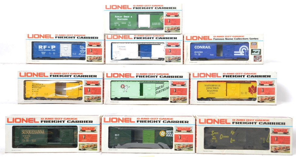 Browse a record of outcomes from past auctions, including sale prices and unsold items.10 Lionel boxcars 9401, 9413, 9402, 9439, etcLionel 8773 loco, 18439, more 2 Williams pass.New Lionel O Gauge Eight (8) Assorted Freight Cars10 Lionel cabooses 9172, 9173, 9182, 9168, etc.Five Lionel Auto Carriers with original boxes10 Lionel freight cars 9878, 9400, 9184, etc10 Lionel boxcars 9776, 9758, 9726, etc12 HO locomotives AHM, Mantua, Tyco, etcLot of 4 Lionel Postwar O Gauge Rolling Stock10 Lionel freight cars, Santa Fe, UP, CSX, etc.10 Lionel freight cars 39222, 17544, 19345, etcLionel 2175, 8020, 8562, 8209 etc3 Lionel O Gauge Rolling Stock Cars in OBs(8) Vintage Lionel O/O27 Gauge Boxcars and MoreMPC Lionel O Gauge Freight Cars in Original Boxes X 6Lionel 5 O27 Freight Cars: Cabooses, 2009 TCALionel Rolling Stock Lot of 4 (NIB)Lionel LTI auto racks, freight cars, 12 totalLot of 12: Lionel No. 8206 Locomotive Freight Cars.9 Lionel freight cars 17642, 17337, 19647, etc.4 Lionel locos 8071, 8072, 8754, 88598 Pcs Rolling Stock incl Lionel and Bachmann10 Lionel cars 9783, 7810, 9885, etc.13 Lionel Train Boxcar, Caboose, Metal Bumpers O Gauge