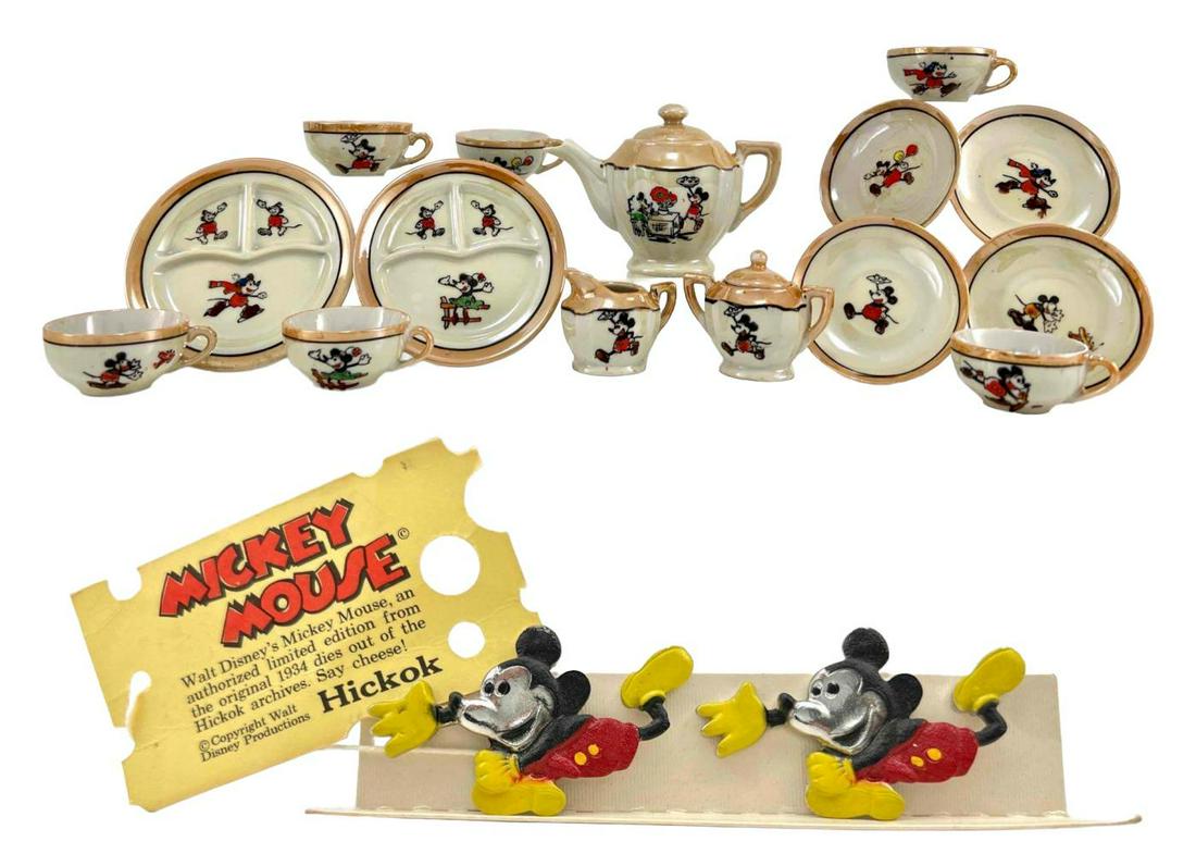 ![Group of 2 Mickey Mouse Ingersoll watches and painted tin t...: Group of 2 Mickey Mouse Ingersoll watches and painted tin tea sets. Including Ingersoll Mickey Mouse Wrist Watch. [Circa 1930s]. Silver-plated watch and band with cast Mickey Mouse accents on band. Mo](https://p1.liveauctioneers.com/928/279847/147334171_1_x.jpg?height=280&quality=70&sharpen=true&version=1677270100&width=280)