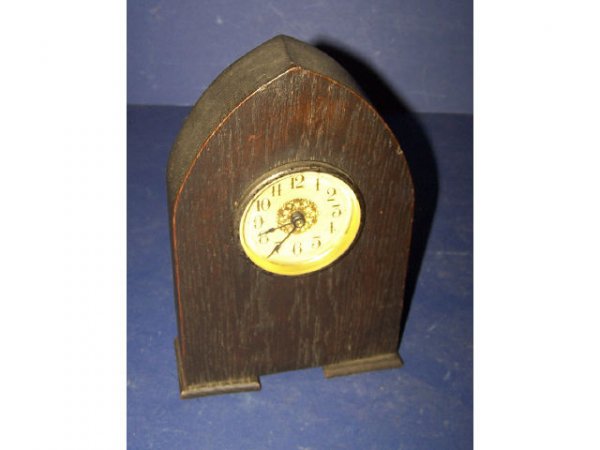 ![Mission Oak Shelf Clock: Mission oak shelf clock with key and pendulum by "The Oscar Onken Co., Cincinnati, USA". [10 1/2" W x 6" D x 20" H]. In good condition.](https://p1.liveauctioneers.com/1221/83329/43149491_1_x.jpg?height=280&quality=70&sharpen=true&version=1450476305&width=280)
