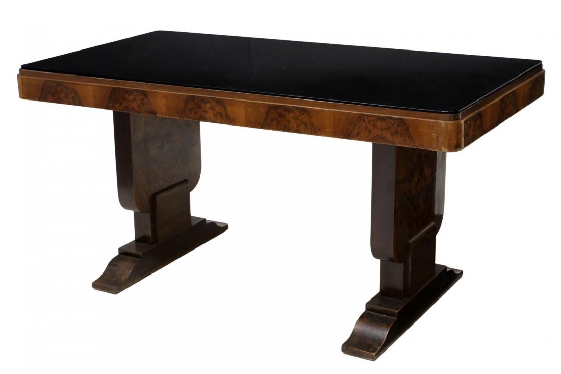 ![Mid-Century Modern Metal Table, 6 Chairs: Mid-century modern metal table with glass top and six chairs with bamboo motif and red vinyl seats. [Table: 66" W x 32" D x 29" H; Chairs: 20" W x 18" D x 33" H]. In good condition. From the Estate of](https://p1.liveauctioneers.com/1221/73831/38106744_1_x.jpg?height=280&quality=70&sharpen=true&version=1434487859&width=280)