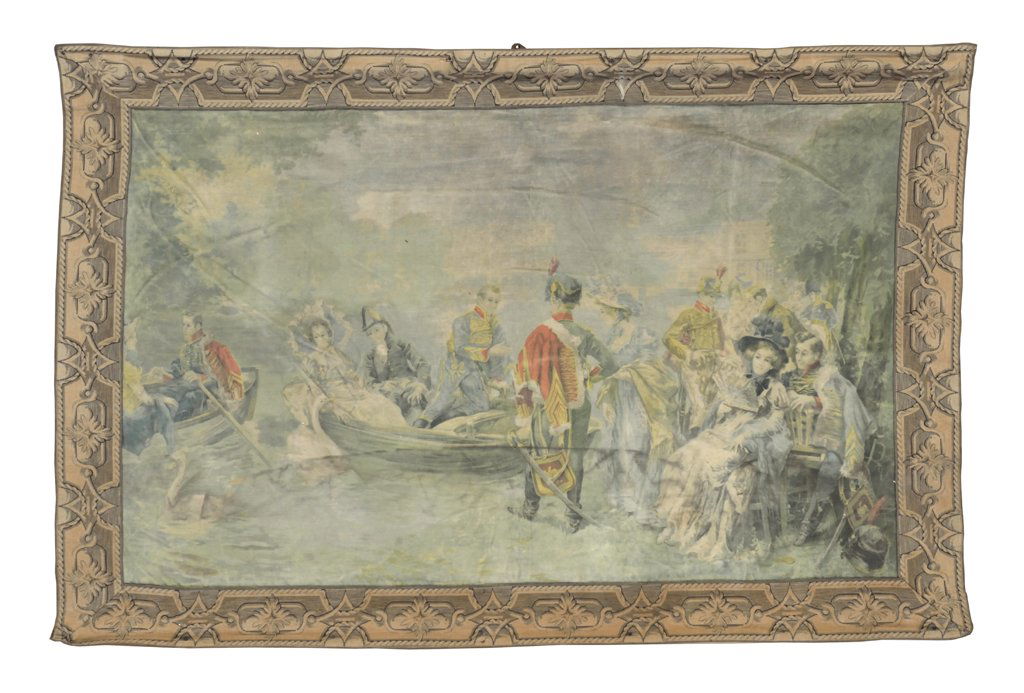 ![Indonesian Relief Embroidered Tapestry: Ornate wall hanging depicting a nobleman in carriage being led by tow elephants. Embroidered in sequins, metallic thread and colored glass beads. [32 1/2" H x 51" W]. Soiling and wear at edges; some b](https://p1.liveauctioneers.com/1221/211216/107981622_1_x.jpg?height=280&quality=70&sharpen=true&version=1626730519&width=280)
