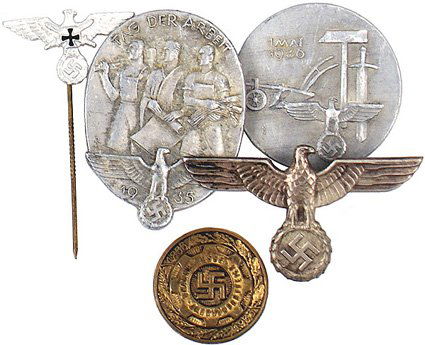 ![WW2 Memorabilia Collected by Neal J. Murphy [161270]: This lot is a collection of Staff Sargent chevrons, hat pins, stars, and bars, two dog tags, Marine Corp officers badge leaf, a Canadian hat badge, a Nazi pin back, Navy SeaBees pin back, Navy medical](https://p1.liveauctioneers.com/2699/282573/149010966_1_x.jpg?height=280&quality=70&sharpen=true&version=1679424330&width=280)