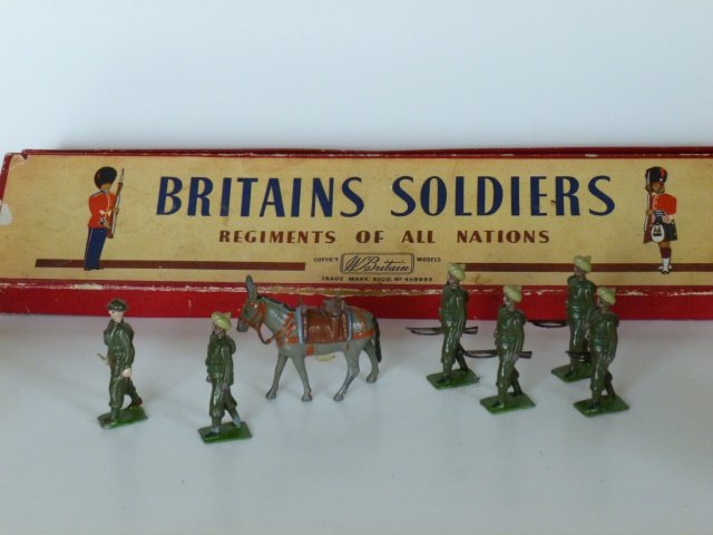 ![Britains: Set # 182 llth Hussars Dismounted: Prince Albert’s Own, Post War Set in “Whisstock” box (NM, box G) [8]. Tied on replacement card.](https://p1.liveauctioneers.com/902/46648/21297257_1_x.jpg?height=280&quality=70&sharpen=true&version=1382451137&width=280)
