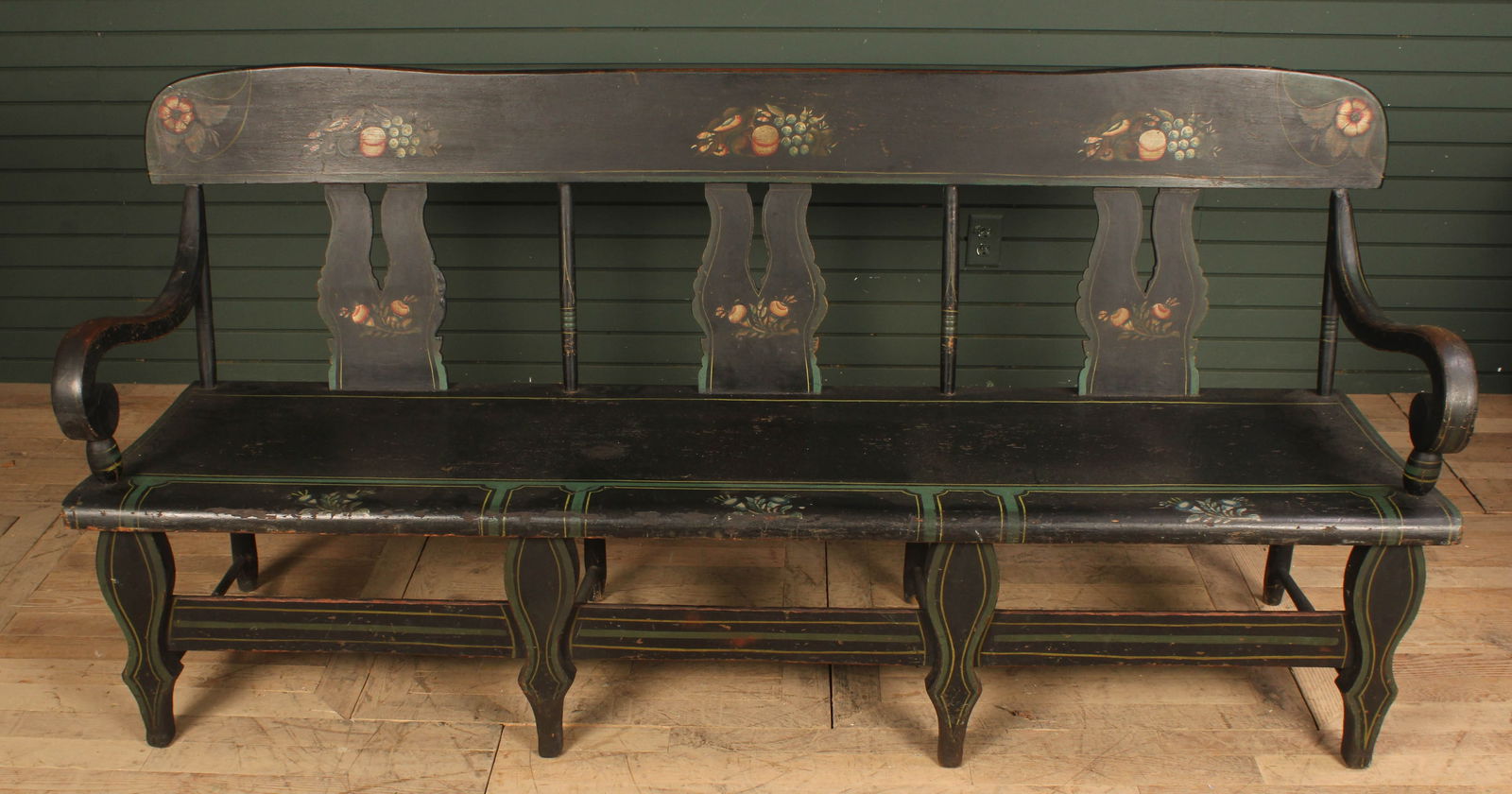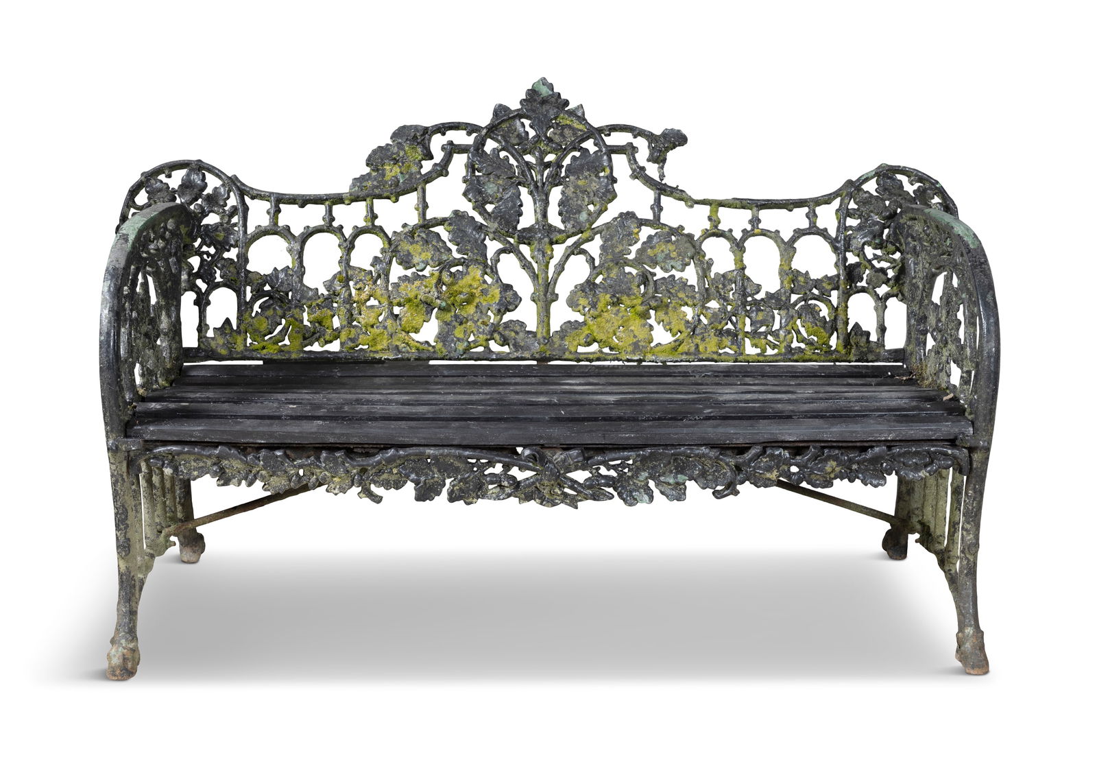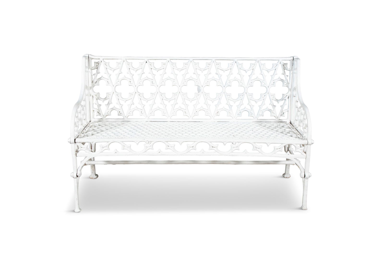 Browse a record of outcomes from past auctions, including sale prices and unsold items.Black painted train style bench with spindle back, scrolled arms, and floral motif. Size: 37" H xA PAIR OF VICTORIAN CAST IRON GARDEN BENCHES the pierced back decorated with oak and ivy leafA 19TH CENTURY WHITE PAINTED GOTHIC CAST IRON BENCH, with open tracery back and honeycomb seat.A 19TH CENTURY CARVED OAK MONKS BENCH the rectangular back with three figural panels above aA LONG MAHOGANY HALL BENCH, with rail back, ring turned upright side supports and solid panelA LATE 19TH CENTURY ARTS & CRAFTS LADDER BACK BENCH With upholstered seat, raised on turned legsA PAIR OF VICTORIAN CAST IRON BENCHES, each with lattice work back and honeycomb seat panels,6.5 foot cement garden bench with wing cherub and thistle back. Five piece construction. Garden BenPair of Cast Iron Garden Benches, 20th/21st c., the canted double arched back with pierced scrollA VICTORIAN GREEN PAINTED GOTHIC CAST IRON TWO-SEATER GARDEN BENCH, with open tracery back andA WHITE PAINTED WIREWORK GARDEN BENCH, the rectangular sun-burst open back with scroll border andA school house spindle-back bench, various hard woods, with turned legs and cross stretchers, andA PAIR OF VICTORIAN CAST IRON BENCHES, each with lattice work back and honeycomb seat panels,A CHINESE RED LACQUERED BENCH, with gilded fret-carved figural and foliate panels. Height of back 98A 19TH CENTURY PAINTED SETTLE BENCH, the high panel back with carved shaped supports above a plain An Italian 'Renaissance' hall or flap bench with grotesques in diamonds in seat and back. Two lionsGARDEN: Patio bench, 20th C., cast metal with painted black finish, pierced design of ferns to backSmall wrought iron park bench with horizontal wooden slats on seat and back - most slats worn andA good early primitive settle bench in original red stain with paneled back, shaped arms, 2 boardPair of American Cast Iron Garden Benches, 20th c., of curved form, the pierced back with grape and Nice older pine bench from Hudson Valley estate, with plaid cushions on back, seat and (2) pillows.A 19TH CENTURY PINE LOW BENCH, splat back with downward sweeping arms raised on square legs joined Antique cast iron bench with wooden slats in nice condition. Grape back, good antique. 46" wide, 34"A PAIR OF VICTORIAN SCUMBLED PINE BENCHES, each with two-panel back and turned tapering forelegs. (2