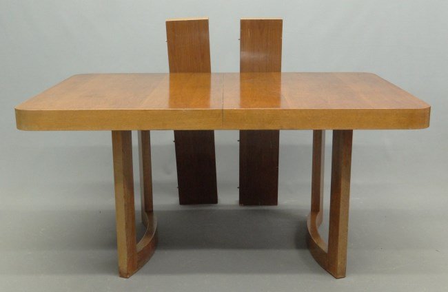 ![Andre Arbus Art DÈco Mahogany Dining Table and Eight: Andre Arbus Art DÈco Mahogany Dining Table and Eight Chairs, Circa 1938 {Height of table 28 3/4 inches, diameter 61 inches; dimensions of chairs 38 1/2 x 19 x 17 inches} [unrestored condition] The mo](https://p1.liveauctioneers.com/1098/90561/46264070_1_x.jpg?height=280&quality=70&sharpen=true&version=1466869896&width=280)