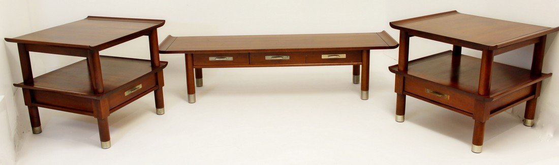 ![Mid-Century Modern Stanley Side Table: Mid-century modern Stanley side/end table, the rectangular top with round corners, having walnut inset veneers, with one drawer, bearing label to drawer. [22 3/4" H x 19 1/2" W x 30" D]. Stains, wear,](https://p1.liveauctioneers.com/1221/348206/189777821_1_x.jpg?height=280&quality=70&sharpen=true&version=1729626692&width=280)