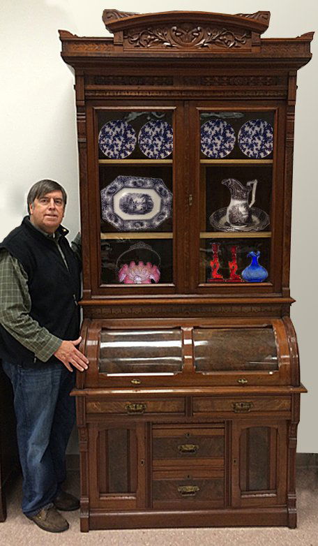 ![Regency-Style Cylinder Desk by Smith & Watson: Regency-style mahogany cylinder roll top desk with a brown tooled leather writing surface. [38 1/2" H x 45 1/2" W x 22" D - 24 1/2" to apron].](https://p1.liveauctioneers.com/1221/271834/142407620_1_x.jpg?height=280&quality=70&sharpen=true&version=1670618921&width=280)