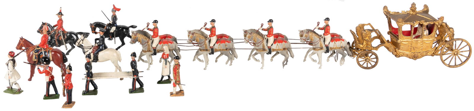 ![[TOY SOLDIERS]. A Large Group of 80 Soldiers, 20 Mounted So...: [TOY SOLDIERS]. A Large Group of 80 Soldiers, 20 Mounted Soldiers, and the Horse-Drawn Coronation Coach with George V and Queen Mary. [Britain: Johillco, ca. 1910s]. Hand-painted hollowcast metal figu](https://p1.liveauctioneers.com/928/321037/172574596_1_x.jpg?height=280&quality=70&sharpen=true&version=1709226402&width=280)