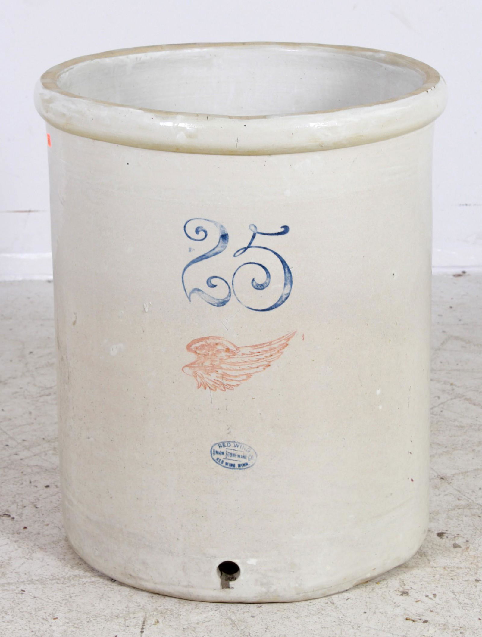 ![Vintage American "Red Wing" Stoneware Crock: Red Wing Minnesota 10-gallon crock, with handles. [17" H x 17" Diam.].](https://p1.liveauctioneers.com/1221/199367/100915651_1_x.jpg?height=280&quality=70&sharpen=true&version=1617563722&width=280)