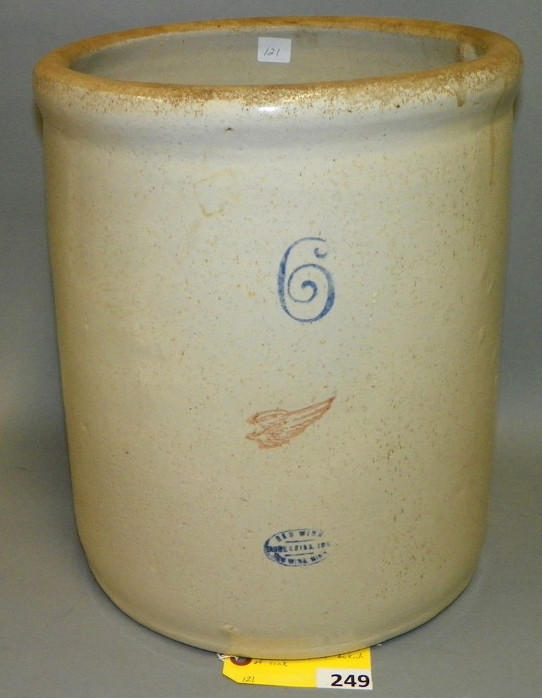 Browse a record of outcomes from past auctions, including sale prices and unsold items.6 Gallon Red Wing Crock This lot features a 6 gallA number 2 signed Red Wing crock with full wing. ItRED WING CROCK(2) GALLON RED WING CROCK8 GALLON RED WING CROCKDeer Lodge Montana Prison Made Red Wing Crock4 GALLON RED WING CROCKAmerican 2 gallon Red Wing crock. SSRDeer Lodge Montana Prison Made Red Wing CrockEarly Red Wing crock jug, chip,Union Stoneware Co #6 Crock, Red Wing Minn. 12"X14"2 Gal. Red Wing Crock Some losses. 9 1/2" d x 10An American Stoneware Crock, Red Wing, Height 13 1/4 in12 Gallon Red Wing Crock Glentonian BarAntique Red Wing Crock Chamber Pot LidBlue & gray salt glazed stoneware decorated 20 gallon RRed Wing 10 Gallon CrockEarly 1900's Red Wing 12 Gallon CrockANTIQUE RED WING 2 GALLON CROCK UNION STONEWARETwenty Gallon Redwing Salt Glaze Crock2 Red Wing Stoneware CrocksA REDWING 40 GALLON CROCK with no handles, largeStoneware Crocks (4), Red Wing 3,4,5 & 8 gal, all w/wings & mfgd by Union Stoneware Co.-Red WingThree Vintage RED WING Stoneware Crocks: