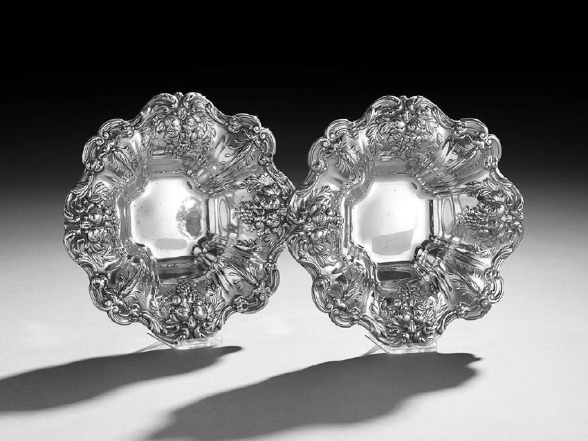 ![Three sterling silver serving sets: Three sterling silver serving setsThree works:An English serving setFrancis Higgins III, London, 1883Each with impressed standard, city, date letter, Queen Victoria, and maker's marks: FH [in a heart]](https://p1.liveauctioneers.com/255/406739/225946960_1_x.jpg?height=310&quality=70&version=1770855005)