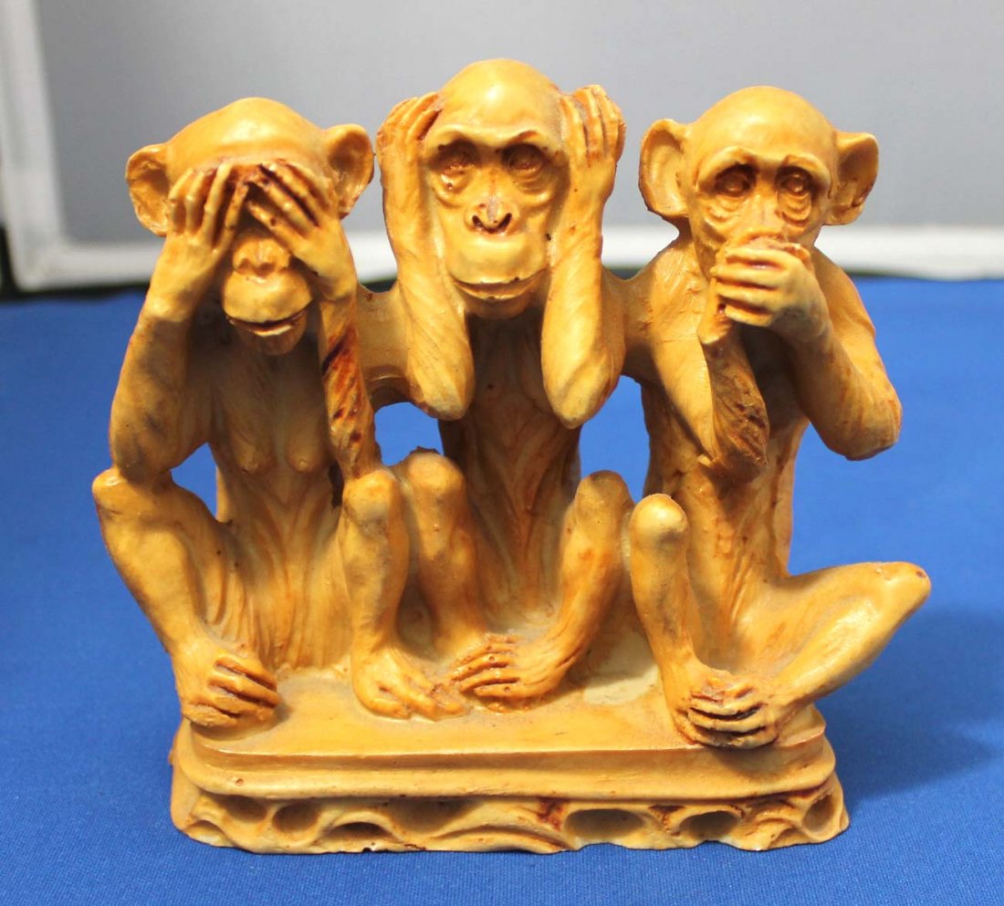Browse a record of outcomes from past auctions, including sale prices and unsold items.GANESHA SEE HEAR SPEAK NO EVIL SET OF 3J.R. Cooper. See, Hear, Speak No Evil Buggy Jugs.Chinese "See, Hear, and Speak No Evil" Monkeys Figure3 CHINESE PORCELAIN MONKEY FIGURES, "SEE NO EVIL, HEARTHREE CARVED WOOD MONKEYS SEE, SPEAK, HEAR NO EVILPAIR OF CAST IRON GNOME SEE NO EVIL BOOKENDSSIGNED TRIFARI 3 MONKEY HEAR SEE & SPEAK NO EVILNew Boxed 3 Monks Hear See Tell No Evil4 Assorted Monkey Groupings Hear, See, Speak No EvilSterling Silver "See No Evil" Monkeys - Lot of 5Vintage Wood Bead See No Evil pendant Necklace 22"3 Chinese carved ivory monkeys - "See No Evil", "SDaum France See Hear & Speak No Evil Monkey SetROBERT DEYBER "See No Evil..." Hares Limited Edition LithographPortrait of a Young Man (with "See No Evil…" monke2 sets of Chinese carved ivory monkeys - See No Evil, Lot of 3 Hear Speak See No Evil Monkey Sculptures4 Pc Daum Monkeys Hear See and Speak No Evil19c okimono SEE NO EVIL MONKEY by netsuke carver KOSAIBlue and White Chinoiserie Vase - "Speak / See No Evil" Monkeys?MASTER MEOW SEE, HEAR, SPEAK NO EVIL FIGURINES SETBrass Monkey Statue with Stone Base See No EvilLt 3 Hear See Speak No Evil Silvered Brass BuddhasCarved Stone Cup Three Monkeys Hear See Speak No Evil