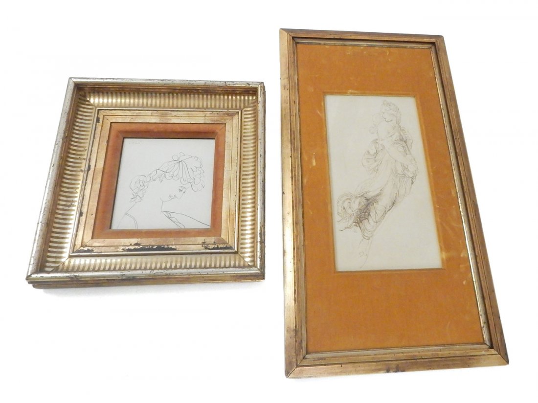 ![Two Drawings: Comprises: After an original pen and ink drawing of a woman in flowering robes by Raphael. [Sight: 7 1/8" W x 13 1/4" H; Frame: 13 3/4" x 25"]. Accompanied by a pen and ink drawing of a woman signed b](https://p1.liveauctioneers.com/1221/58792/29297324_1_x.jpg?height=280&quality=70&sharpen=true&version=1406654476&width=280)