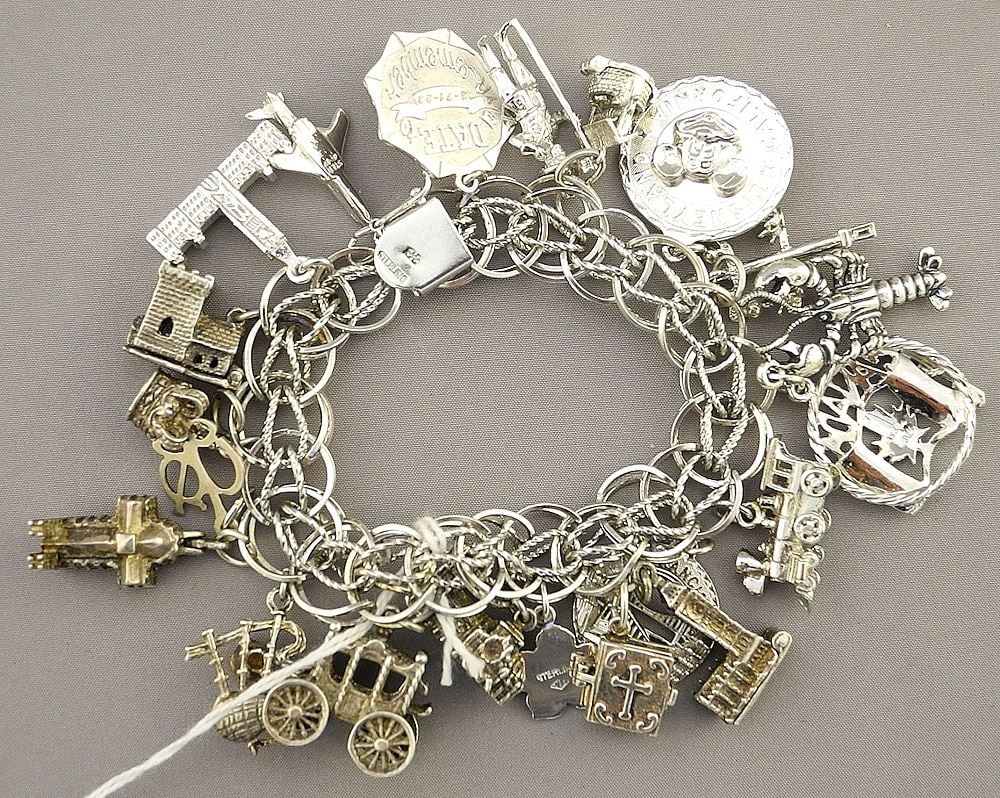 Browse a record of outcomes from past auctions, including sale prices and unsold items.Vintage Sterling Silver Ankle Charm Bracelet, Confirmation Charm, 9.5"Sterling (stamped) Charm Bracelet with 20 Silver Charms, 83g.VINTAGE STERLING SILVER CHARM BRACELET WITH MINIATURE FIGURAL CHARMSGroup of 12 Sterling Silver Charm Bracelets with CharmsVintage Sterling Silver Charm Bracelet with 13 Unique CharmsSterling Silver - Charm Bracelet with 10 Charms - 76.6 GramsSterling Silver Virgin Islands Necklace and Sterling Silver Pandora Red Charm BraceletA Sterling Silver Bangle Bracelet and Eight Sterling Silver Charms, Tiffany & Co.Sterling Silver Jewelry - Rings, Bracelets,More - Charm Bracelet w/ .800 Silver - .925 Sterling3 'People' Sterling Silver Charms On 18' Sterling Silver Chain Marked ItalySterling Silver Noah's Ark Bracelet and .925 Sterling Silver Religious Charms NecklaceMexican sterling silver charm bracelet with sterling silver figural Indian head earrings.Vintage Sterling Silver pieces for Charm Bracelet Together With Sterling Silver JewelryVintage Sterling Silver Charm Bracelet LOADED 50 Great Charms 7"Vintage Sterling Silver Charm Bracelet LOADED 50 Great Charms 7"Vintage Sterling Silver Ankle Charm Bracelet, Confirmation Charm, 9.5", 1960'SVintage Sterling Silver Cowboy Boot Charm Charm weighs 4.0 GramsVintage Sterling Silver Ankle Charm Bracelet, Confirmation Charm, 9.5", 1960'SVintage Sterling Silver Charm Bracelet Attendance 1 Year Award CharmSterling Silver Charm Bracelet with Religious Themed Charms – 57.87gAntique Early 1900s Sterling Silver Pilgim Charm Bracelet /w Charms6" Cool Vintage Sterling Silver Charm Bracelet w/ 13 CharmsSterling Silver Charm Bracelet With Sixteen Charms, Many Military Themed7.5" STERLING SILVER CHARM BRACELET WITH 17 CHARMS MIDWEST/MEXICAN INSPIRED