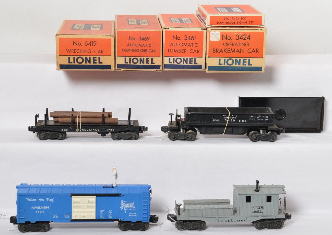 Browse a record of outcomes from past auctions, including sale prices and unsold items.Lionel 38066 Elk River Coal shayLionel 3424, 3461, 3469, 6419 in original boxesLionel 243E Set 259E 259T 831 809 807 BoxedAmerican Flyer 312, 937, 928, 925, 936, 946, 930Lionel No. 3460, 6262 and 6264 flatcars w/loadsLionel 3461X 6462 6257 6257-25 6457 OBs 3469American Flyer 3185, 3206, 3207, 3208, 3211 O ga.American Flyer tinplate O gauge loco and freightPacific Fast Mail Long Bell 2-6-2 locoLionel Freights 2461 3451 6465 2452X 2411 6456Lionel 3461-25 3361 Log 3359-55 Twin Bin 6417Dorfan prewar 53 loco with freight carsLionel 3361, 6315, 6517 in OBLionel No. 811, 812, 813, 815, 816 in OBLionel No. 221, 221T, 2465, 3451, 3559, 6511...10 MTH freight cars flats, boxcars, dump car, etcLionel 456, 464, and 364 operating accessoriesSix LGB American freight cars in OB, 4070, 4068.Lionel 3482 Stamped RT3472 3461X OBs 3469Lionel 6462, 64556, 2466WX, 6466WX, 3461 in OBIves 4-Wheel Litho Freights 53 54 57 56 11Lionel 3811, 2813, 2815, 2816, 3859, 2820Lionel 2811 Aluminum Flatcar w/Lumber LoadLionel 212 S.F., 6475, 6361, 6415, 6428, 6437