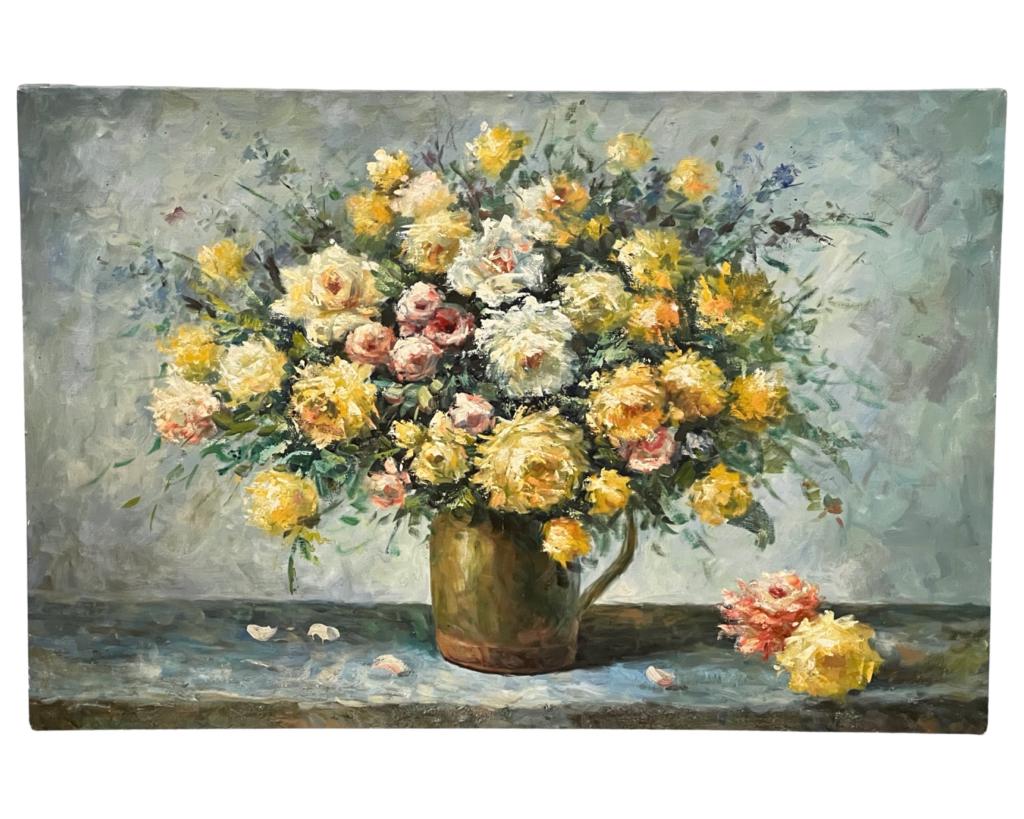 ![Signed T. DENVER: Impressionist Floral Painting: Impressionist still life with flowers in a basket. Oil on canvas. Signed, lower right. [Sight: 23 1/2 x 35 1/2 inches; Frame: 30 x 41 3/4 inches].](https://p1.liveauctioneers.com/1221/310017/166783838_1_x.jpg?height=280&quality=70&sharpen=true&version=1701825562&width=280)