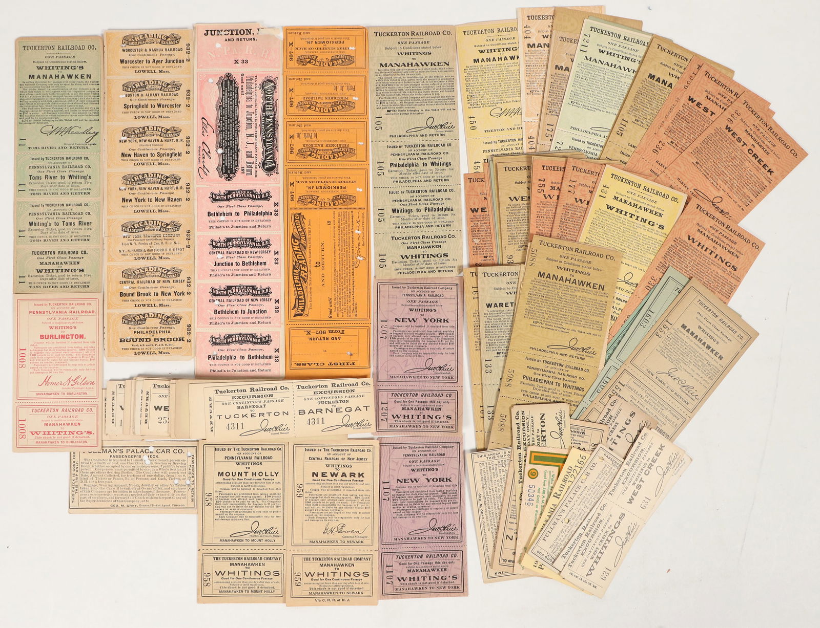 ![Tuckerton Railroad Tickets [204584]: Lot of over 70. Tuckerton Railroad Tickets. Tickets are not dated. Several different styles: stubs, paper sheet, daily pass punch card. Tuckerton Railroad operated from 1871-1936 in mid-coastal New Je](https://p1.liveauctioneers.com/2699/393213/217849652_1_x.jpg?height=280&quality=70&sharpen=true&version=1761241285&width=280)