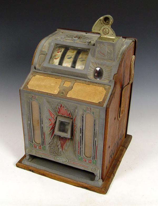 ![Jennings Upright Challenger Slot Machine [170223]: Jennings Challenge upright floor model slot machine. Measures 16" deep x 22" wide x 53" high. This is a dual play model taking nickels as well as quarters. Top vertical glass plate is broken, but the](https://p1.liveauctioneers.com/2699/299100/159223957_1_x.jpg?height=280&quality=70&sharpen=true&version=1692058227&width=280)